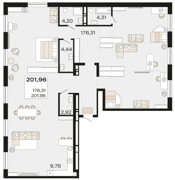 Комплекс выполнен в европейском архитектурном стиле с использованием современных и экологичных материалов. Панорамные окна, высокие потолки и продуманная эстетика фасадов формируют статусный облик квартала. Благоустроенные дворы с озеленением, скамейками и освещением создают ощущение комфорта и безопасности с первых шагов.