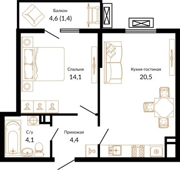 Площадь от 26.4 м2