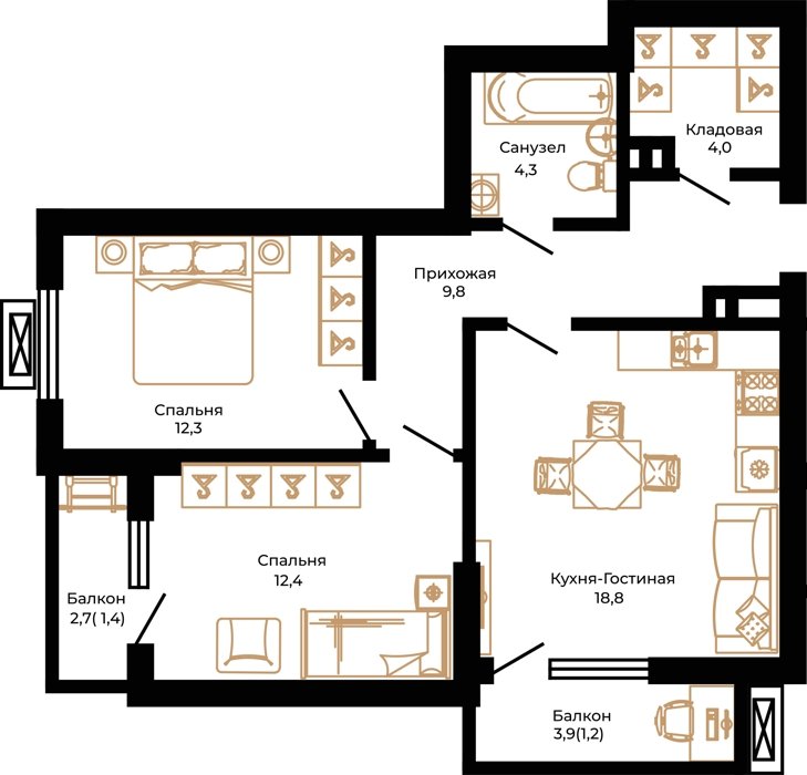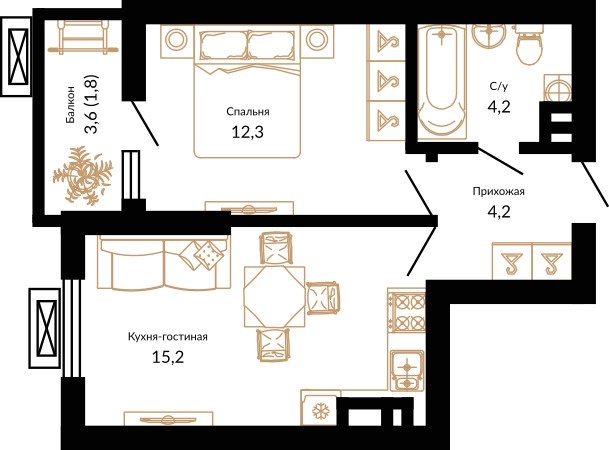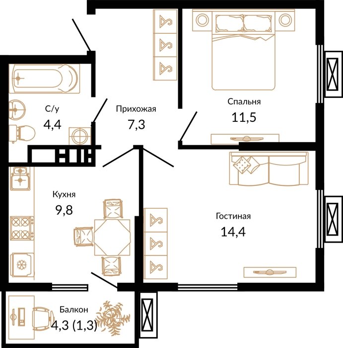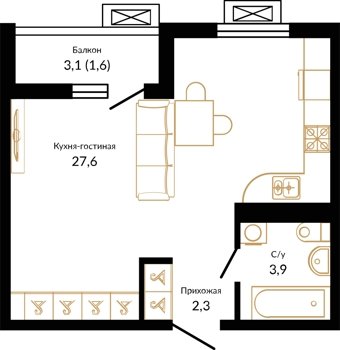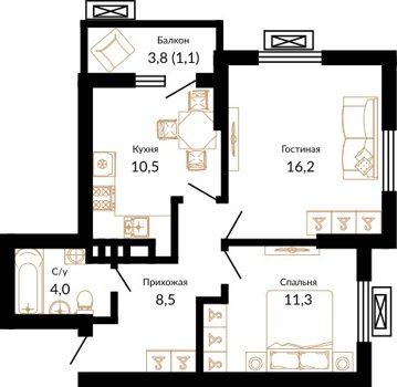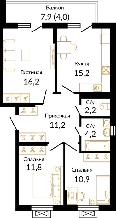 Площадь от 37.8 м2